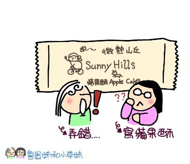 小草妹仔細看了一下,包裝盒上印的是「蘋果」圖案,原來是蘋果酥~魯蛋姊弄錯了!!!