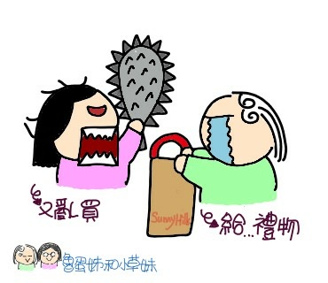 魯蛋姊回家時,從包裡面神秘的拿出了一個小提袋,眉開眼笑的遞給了小草妹,基於對魯蛋姊愛亂買東西的瞭解,小草妹立即投出嚴厲的眼神!!!!